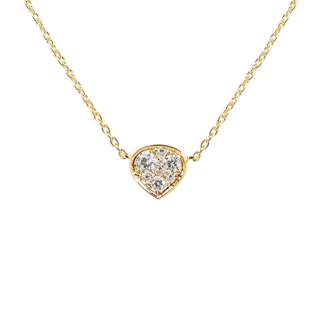 This extraordinary fine jewellery pendant necklace features a delicate triangle whose gentle curves subtly echo the shape of the décolleté. Nestled within this feminine form lies a mesmerizing mosaic of diamonds and carefully placed inverted diamonds that introduce an unexpected play of light and dimension.