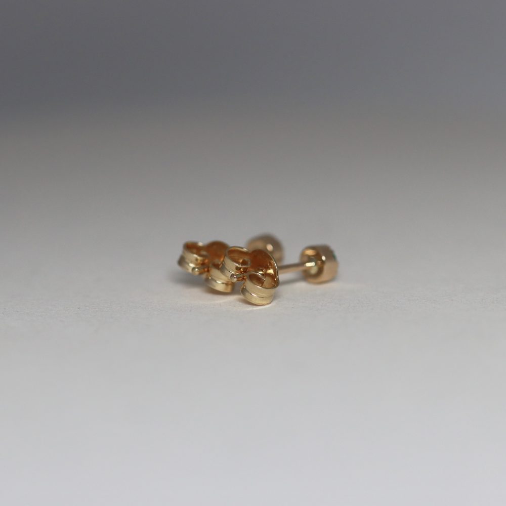 Handcrafted in Belgium, these tiny 4 mm stud earrings in 18K yellow gold are a playful yet sophisticated expression of contemporary craftsmanship.