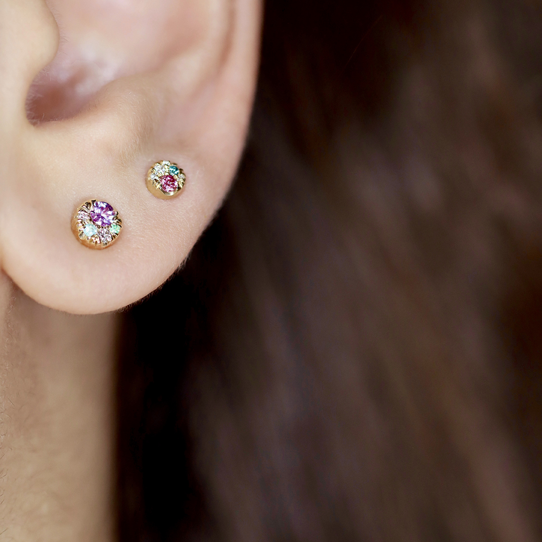 Compact in size yet rich in character, these earrings can be worn solo or styled together in multiple stacking piercings, adding a subtle, striking spark of individuality to any ear curation.
