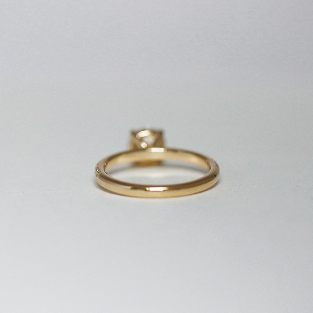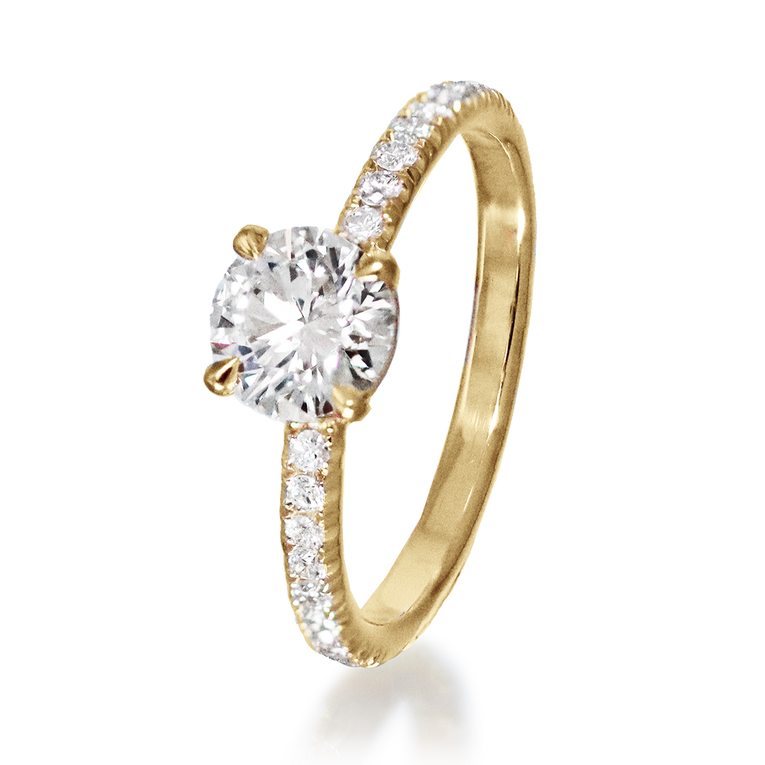 Handcrafted in solid 18k yellow gold, this ring features a 1.01 ct lab-grown brilliant-cut diamond as its centerstone.