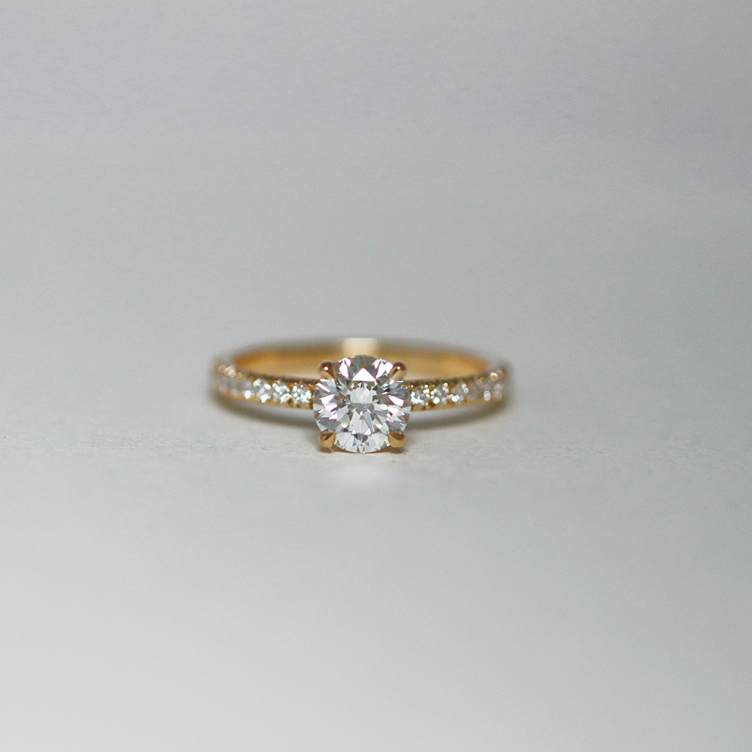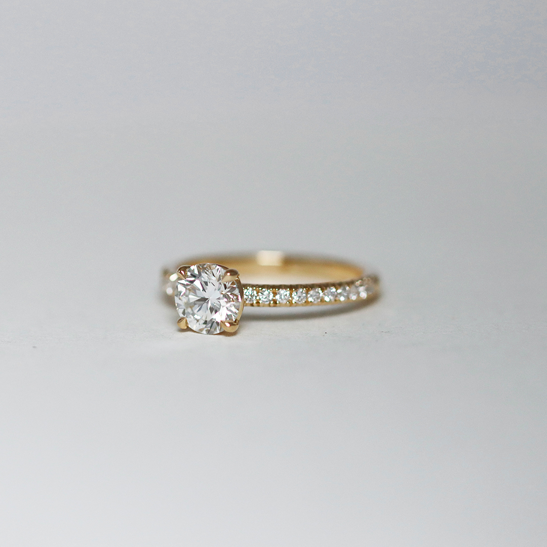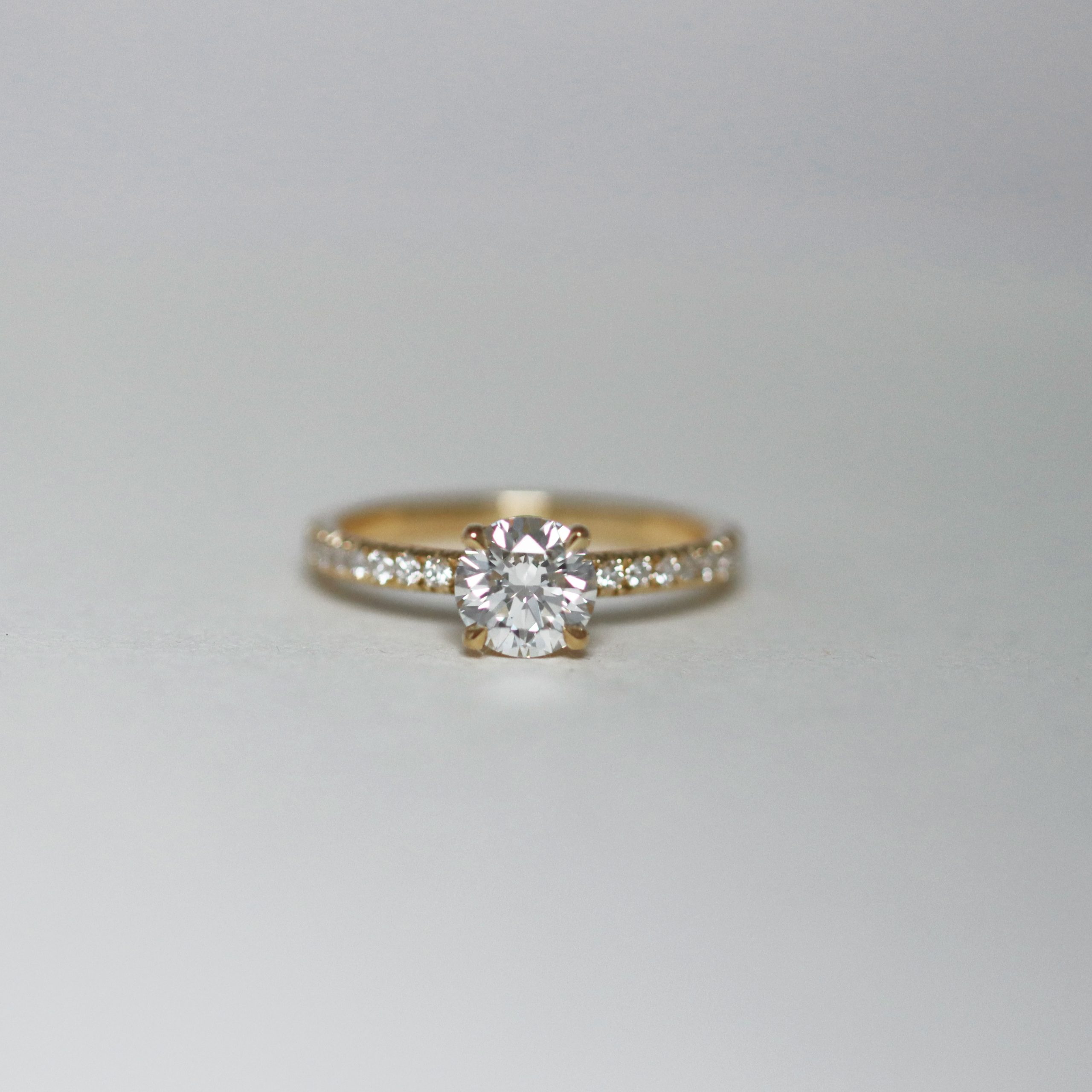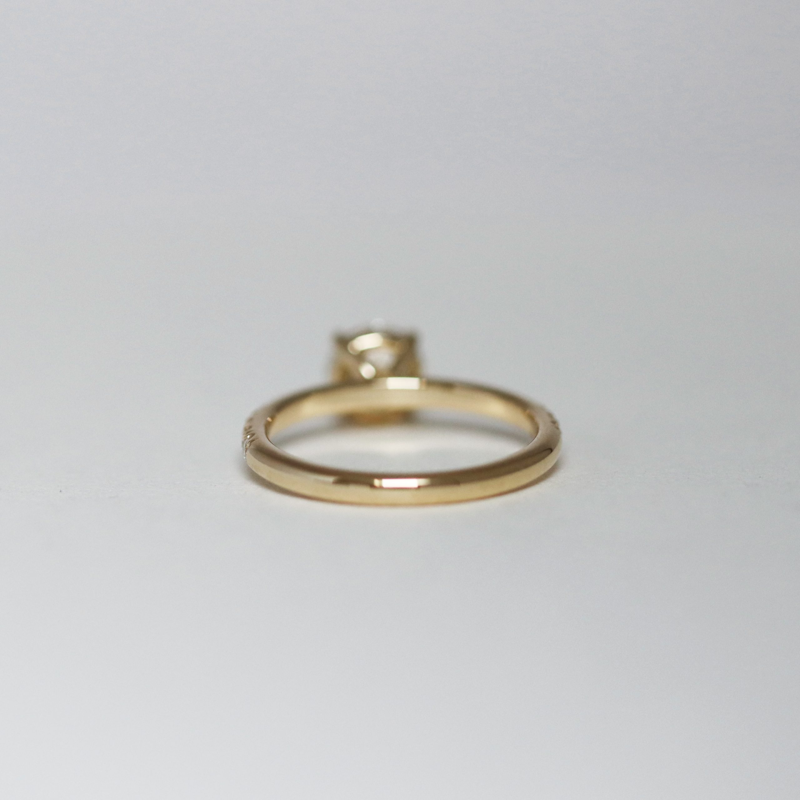 The combination of warm yellow gold and the crisp brilliance of lab-grown diamonds gives this ring a modern yet enduring elegance, perfect as an engagement ring or a signature everyday piece.
