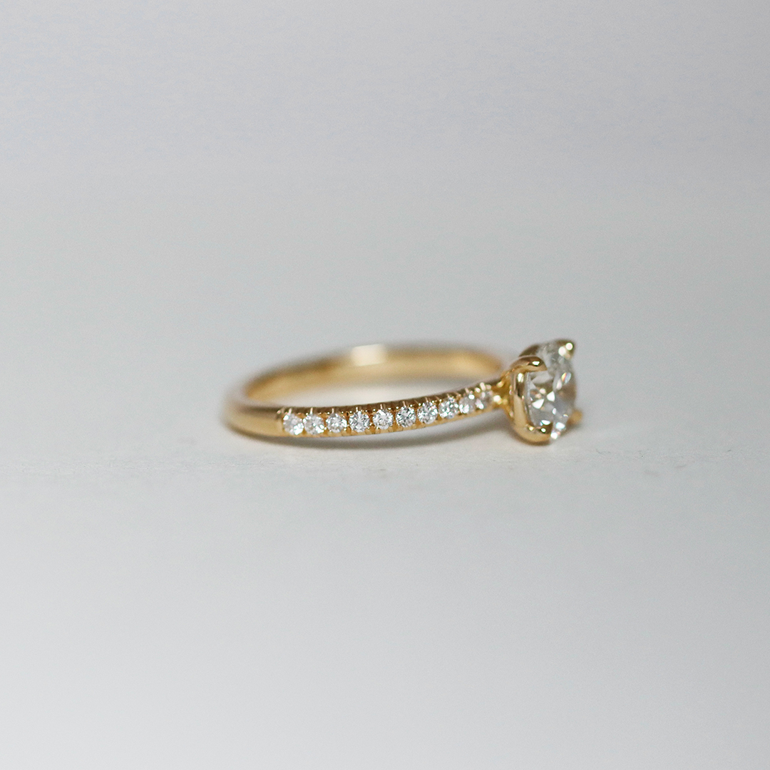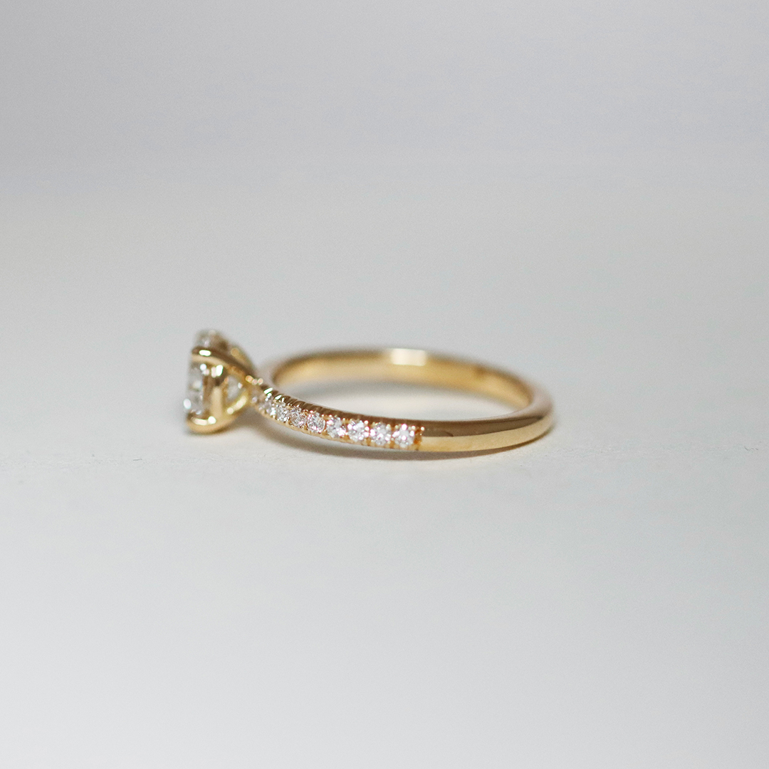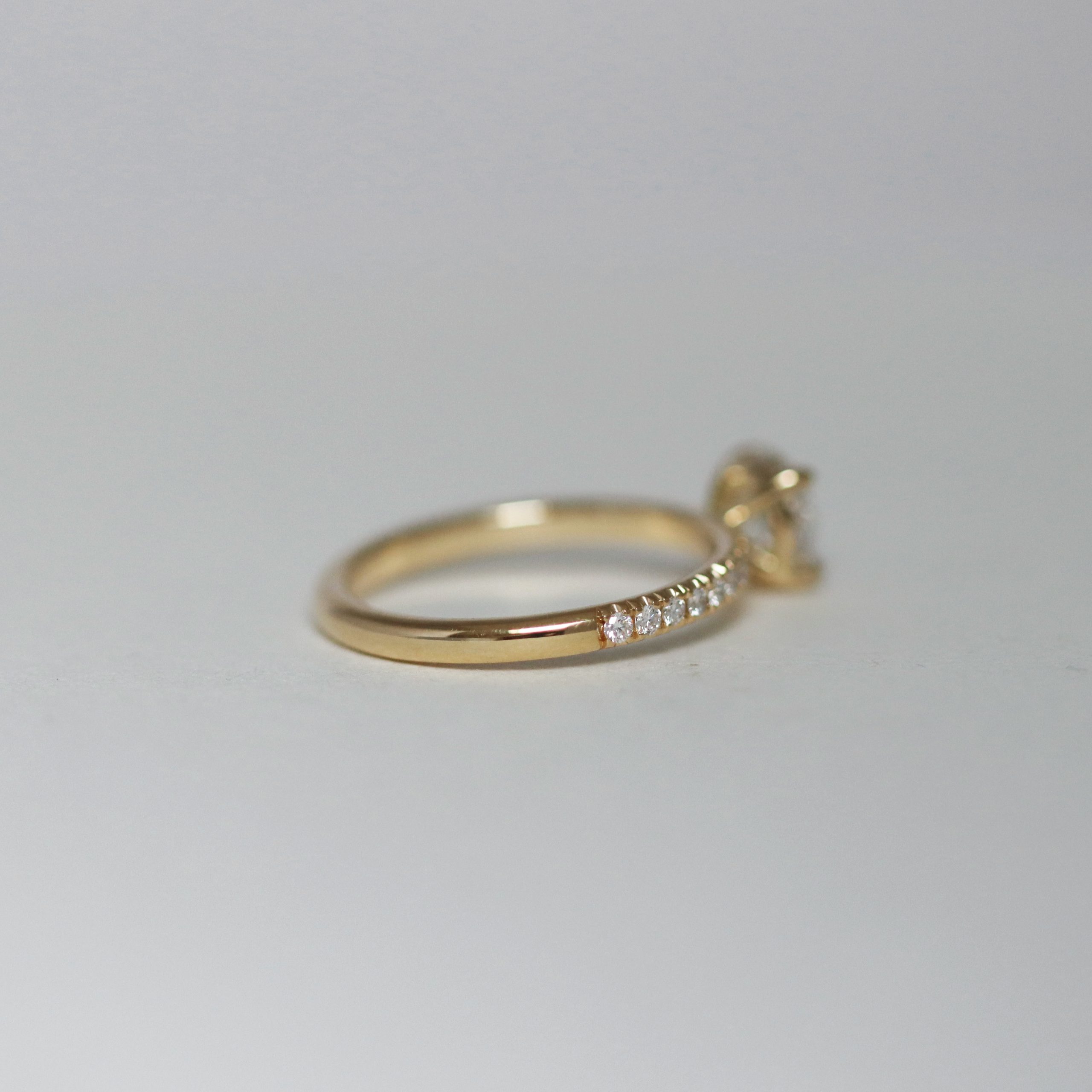 The design is subtly elevated with additional lab-grown diamonds (0.21 ct) set along the shoulders, adding a delicate sparkle that enhances the clean, timeless silhouette.