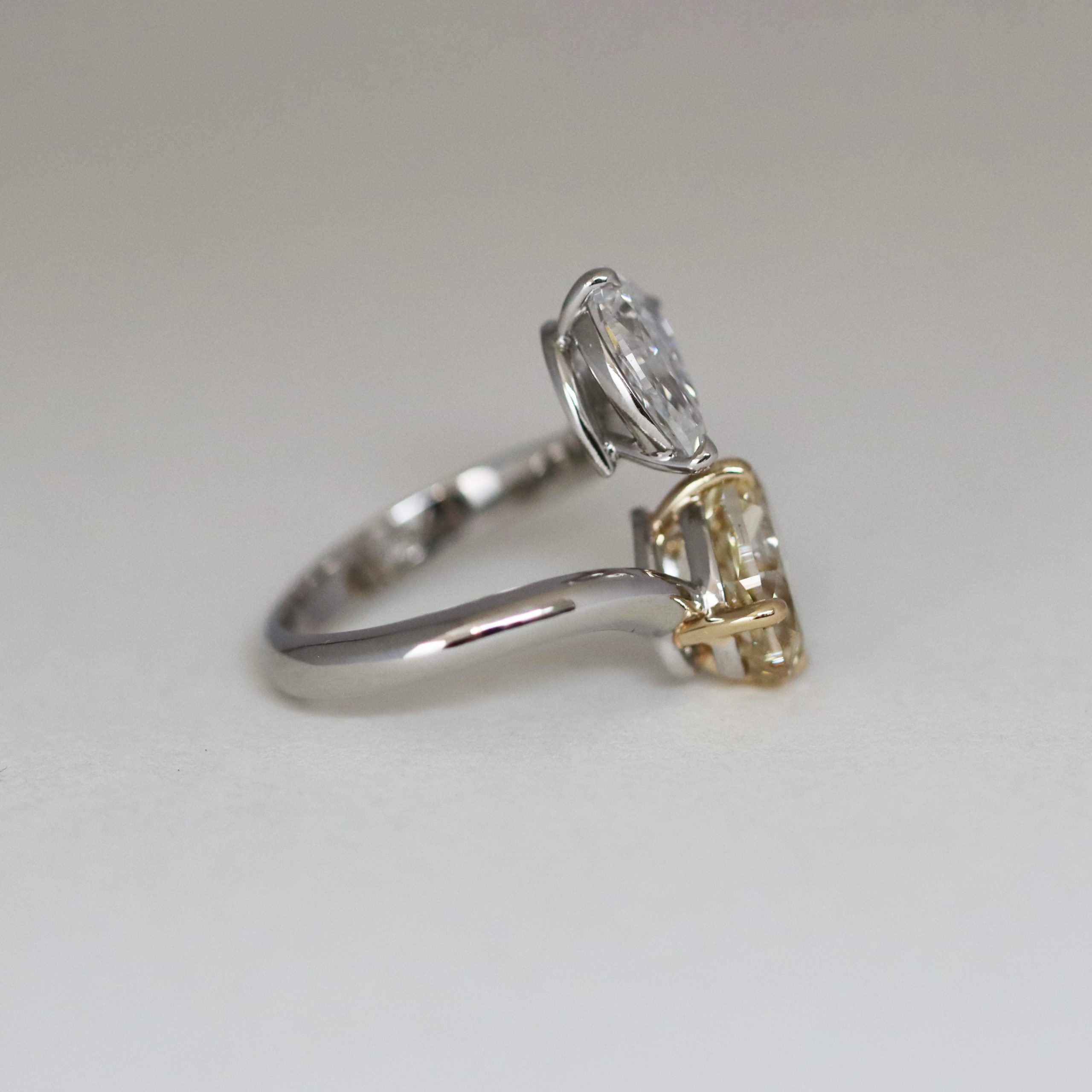 Platinum Toi Et Moi Ring, Lab Grown Oval-cut Yellowish Brown Diamond, Lab Grown Pear Shape White Diamond