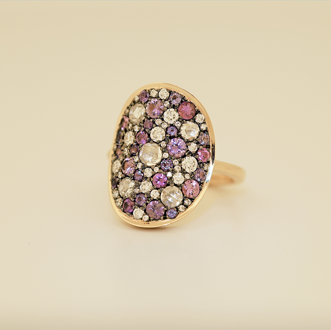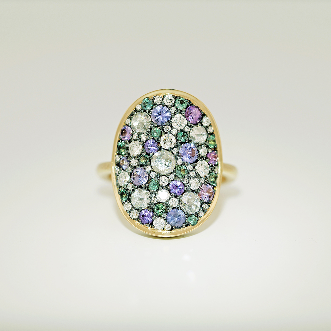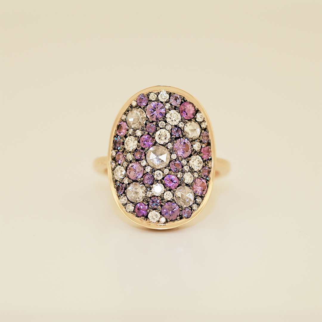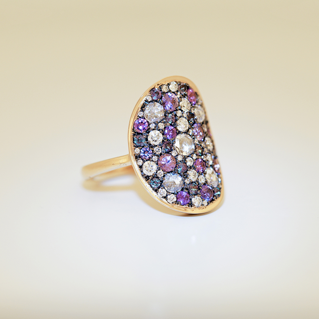 Yellow gold Alexandrite Purple Sapphire Diamond Pavé Ring